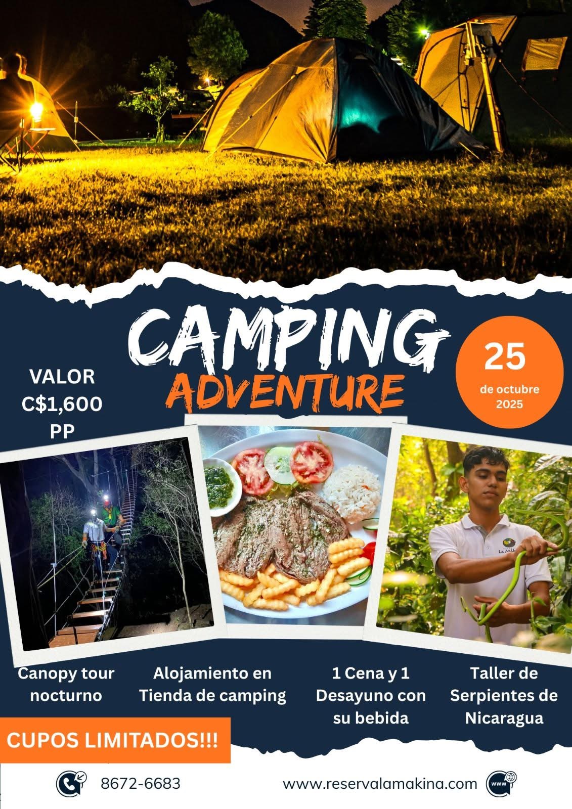 Hemos destinado un área de camping para que puedas disfrutar de las estrellas y la Naturaleza con la Adrenalina del Cánopy Nocturo y una charla especial sobre reptiles con Iván Explires.